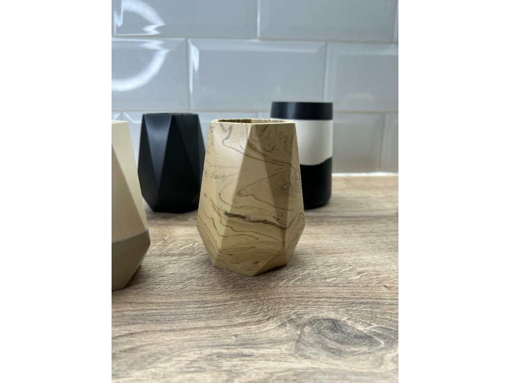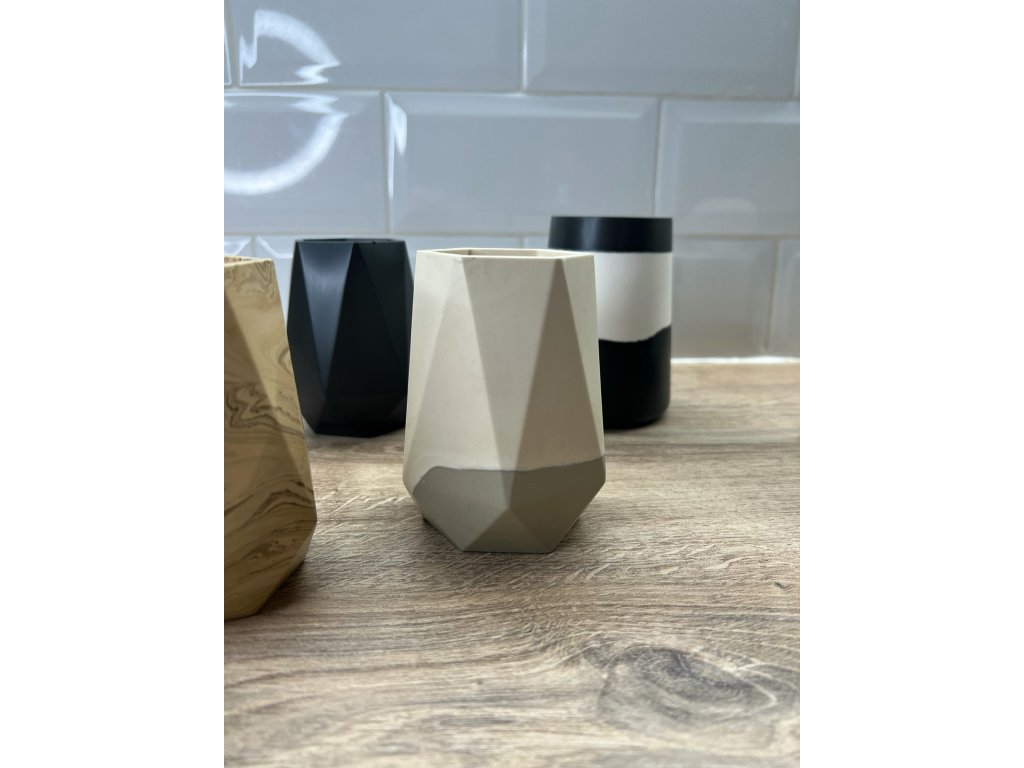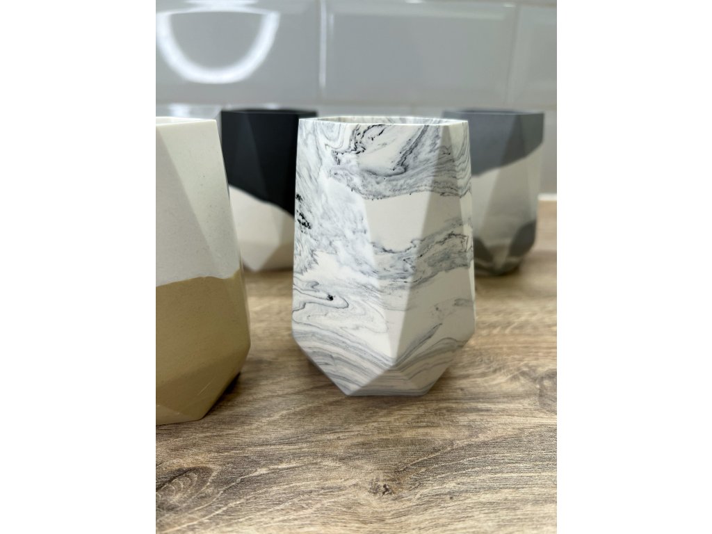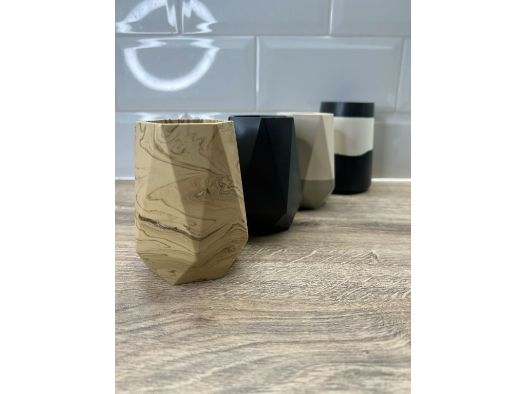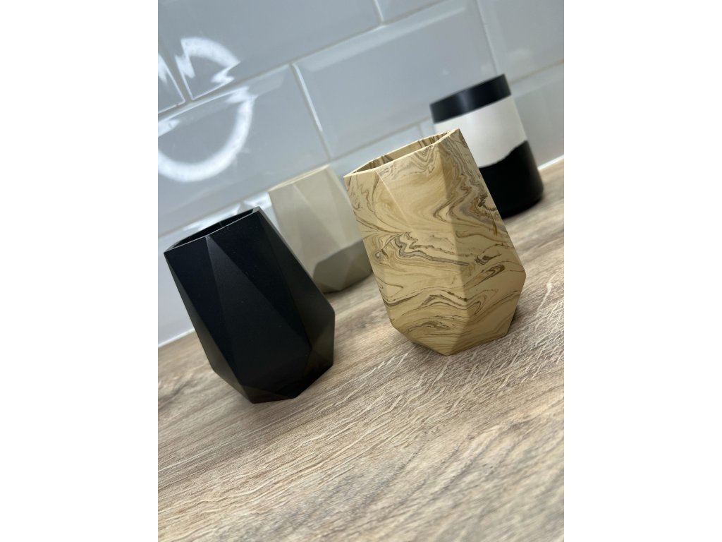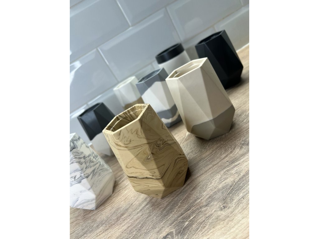 - Použitý materiál: hmota Jesmonite, pigmenty, akrylový tmelící zátěr, tlumící čočky